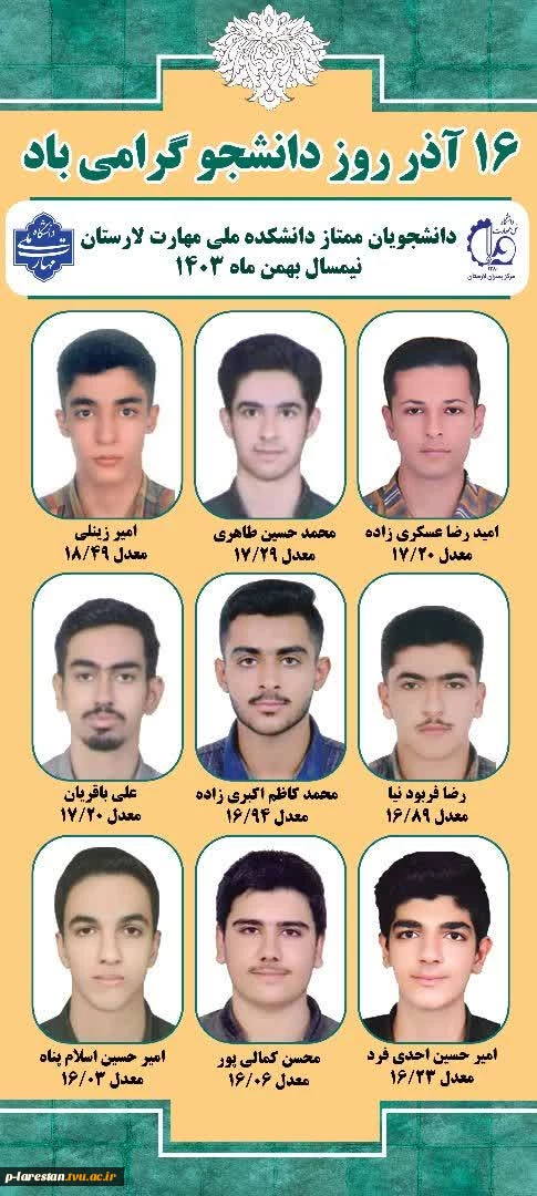 مشخص شدن دانشجویان برتر علمی آموزشکده در ترم گذشته
